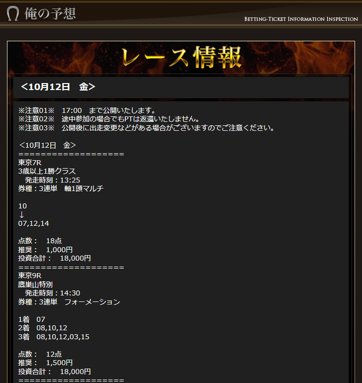 驚いたのは13日の無料予想です。