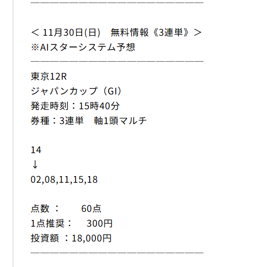 三日間開催はSTAR競馬さんの無料情報のおかげで大勝ちできましたは、この無料買い目は3連単で6万6350円当たった実際の買い目です!