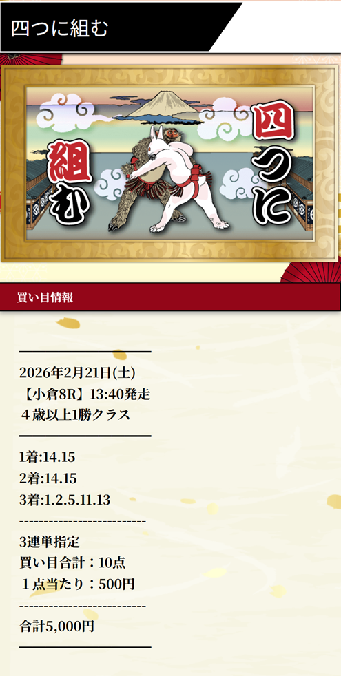 今年の小倉はまじで荒れすぎ、開幕週のJRA中央競馬最高配当更新を見てから競馬予想サイトを使う用になり数週間に至ります。