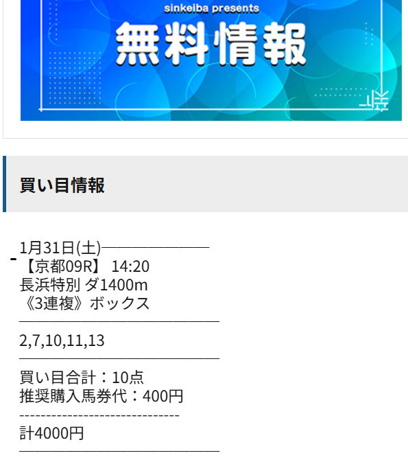こういう配当付く、尚且つ穴候補が勝つレースをピンポイントで公開するシンケイバは凄い予想です。