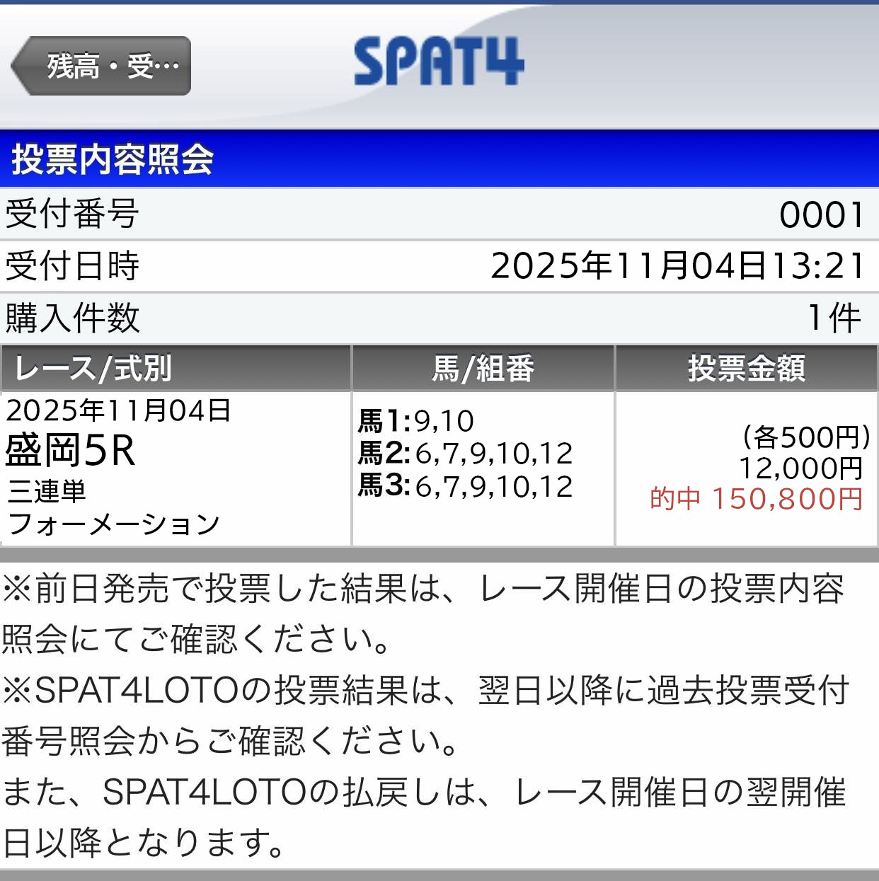 盛岡のレース即PATで買えなくて焦ったけどAPAT登録して買えた、買えなくて諦めなくてよかったわ