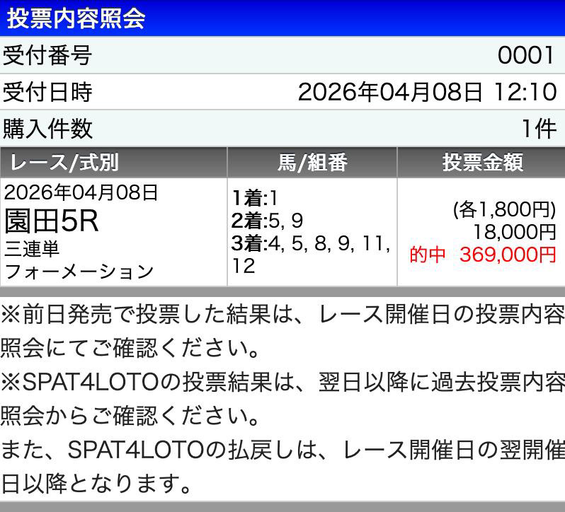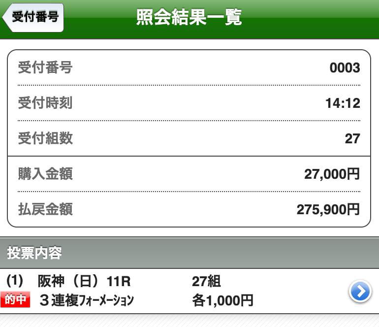 昼休み中に馬券買って、17時に仕事終わって的中してるか確認したらビックリ!!