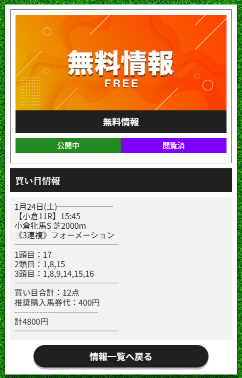 小倉牝馬S【GⅢ】ヒモ荒れしたけど穴党さんの無料予想で的中貰えましたわ。
