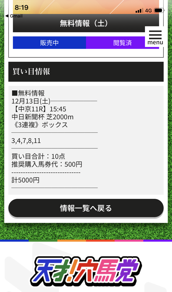 難しいハンデ重賞戦的中あざっした! 明日G1資金が貯められました、57,700円の配当でした! 明日も重賞無料で出るよね?楽しみにしています!