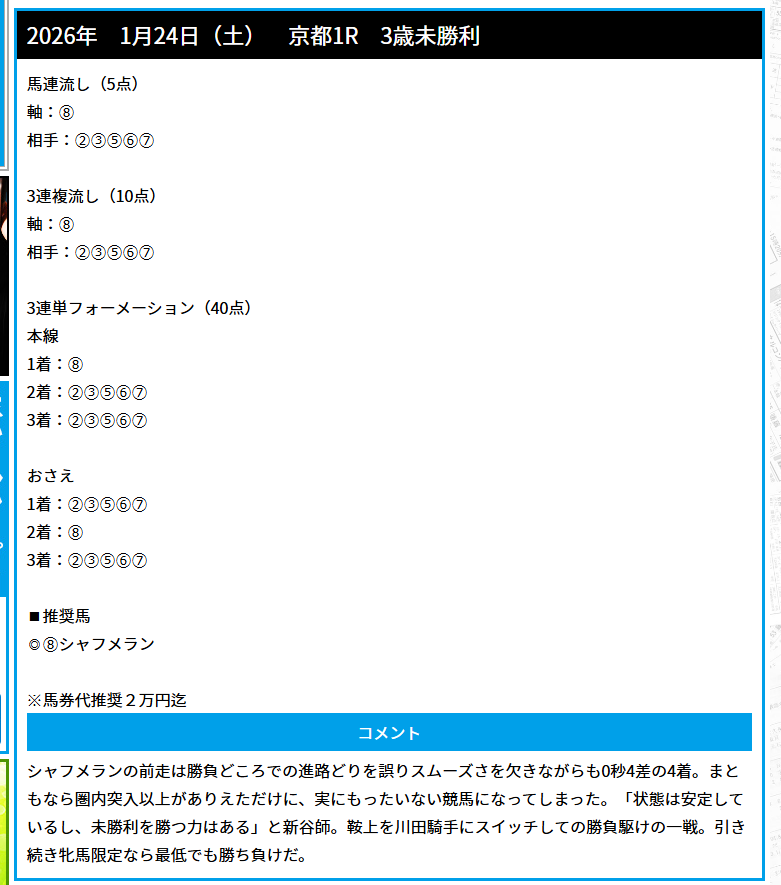 配当狙って3連単1点狙いで無料予想使って正解でしたわ!